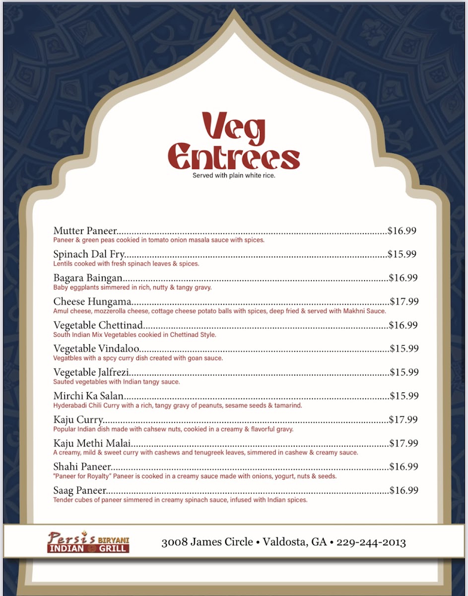 Welcome to Persis Biryani Indian Grill, a culinary gem nestled in Valdosta, Georgia. With its vibrant offerings, this restaurant has quickly carved out a niche in the hearts of local diners and lovers of Indian cuisine alike. Conveniently located at 3008 James Cir, this establishment celebrates the rich heritage of Indian flavors, particularly renowned for its scrumptious biryanis and authentic masalas.